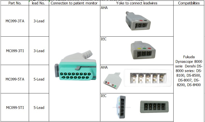 Kompatibilna fukuda DS8100, DS8200, DS8500 3-vodiča EKG kabela 15pin