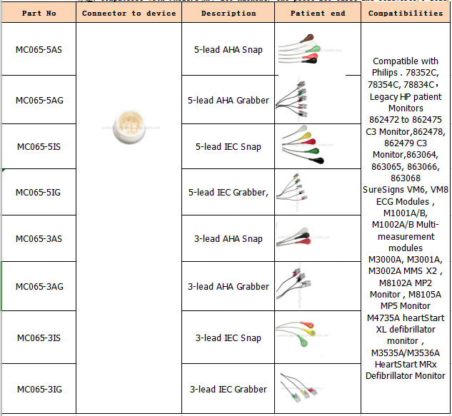 Kompatibilan je sa PHILIPS (HP) ECG mašinom, jednodijelnim EKG kablom i kablovima, 5 olova, snap, AHA ili IEC.HP 12pin, ravni spoj